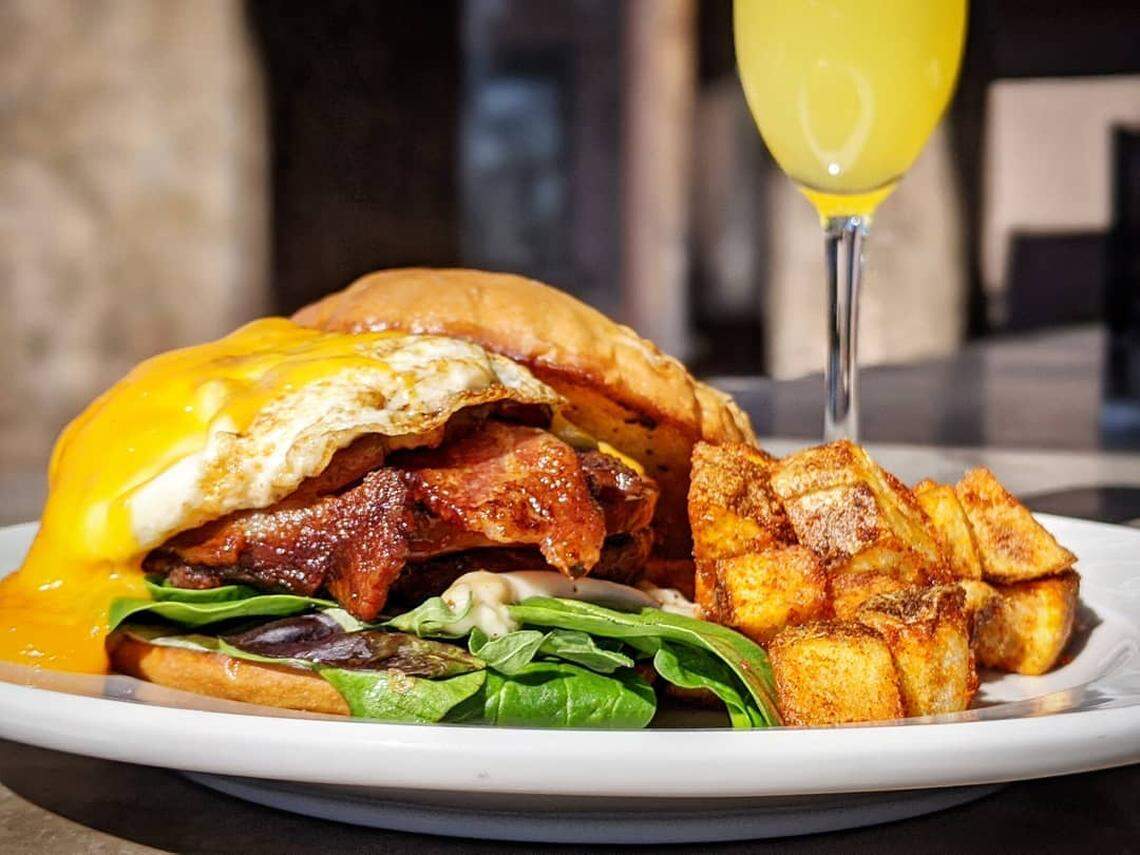 Choose from burgers called the “Wake Up,” Tennessee Whiskey” or the plant-based “Beyond Burger.”