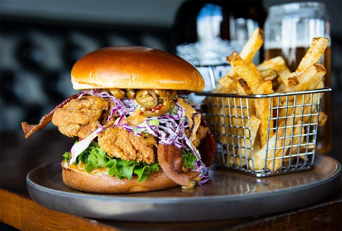 On Sundays, fiction has a variety of choice options — including a Hangover Burger with Wagyu beef, bacon, ham, hard egg with aioli and a side of potatoes. There are other sandwich choices and traditional biscuits and gravy.