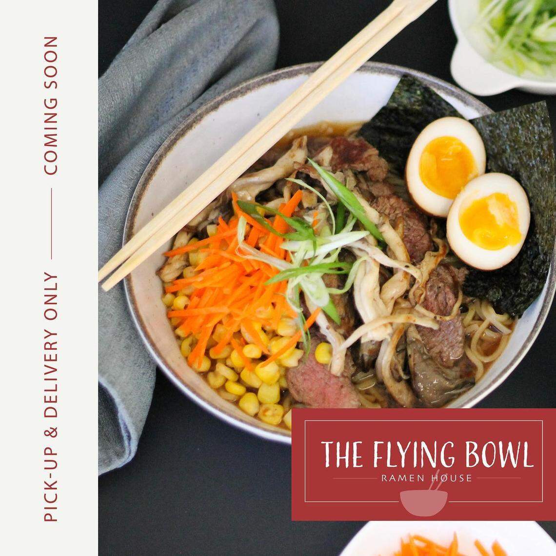 Watch the Flying Bowl’s Facebook page for an official opening date and full menu. Call to order: 509-219-0925 or order through GrubHub. Other third-party vendors will be added as business picks up.
