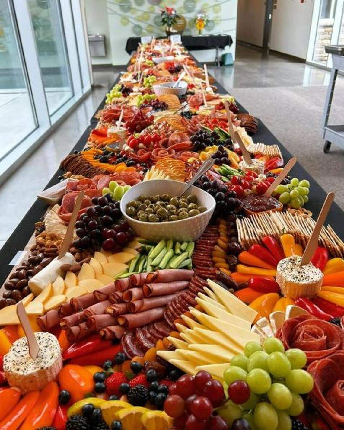 It shops locally for the other items. An individual tray or board can have dozens of different food items, from sweet to savory.