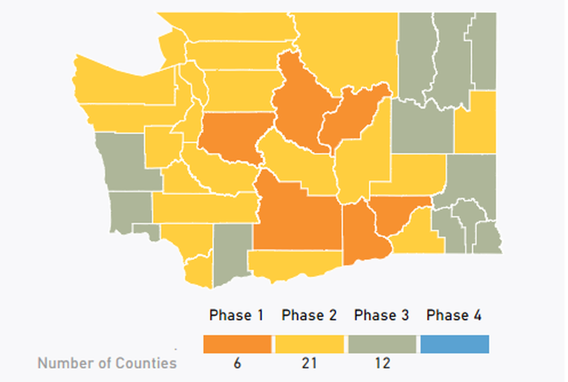 Benton, Franklin and Yakima counties are the only ones in the state that have not moved to Phase 1.5, Phase 2 or Phase 3 of reopening.