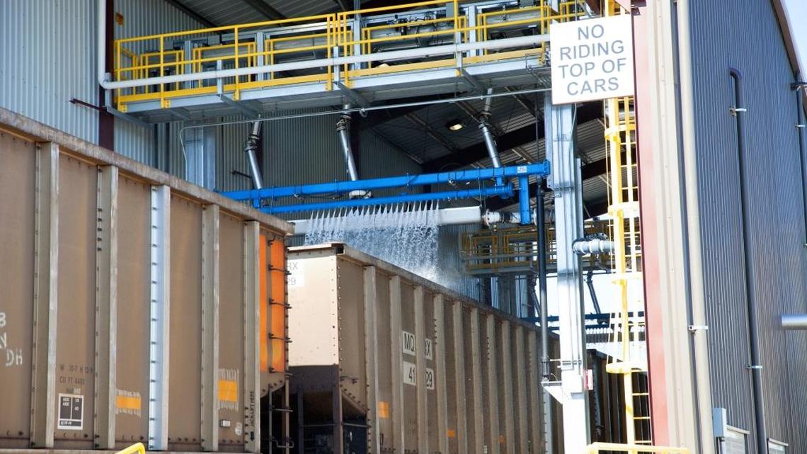 Loads receive a first coating at the mine and are re-sprayed in Pasco, which also received new mainline track in the 2015 upgrade.