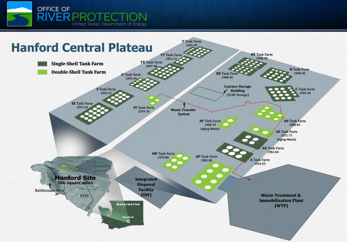 Chemically processing uranium fuel irradiated in nine Hanford reactors to remove plutonium left about 56 million gallons of radioactive and other hazardous chemical waste stored in underground tanks.