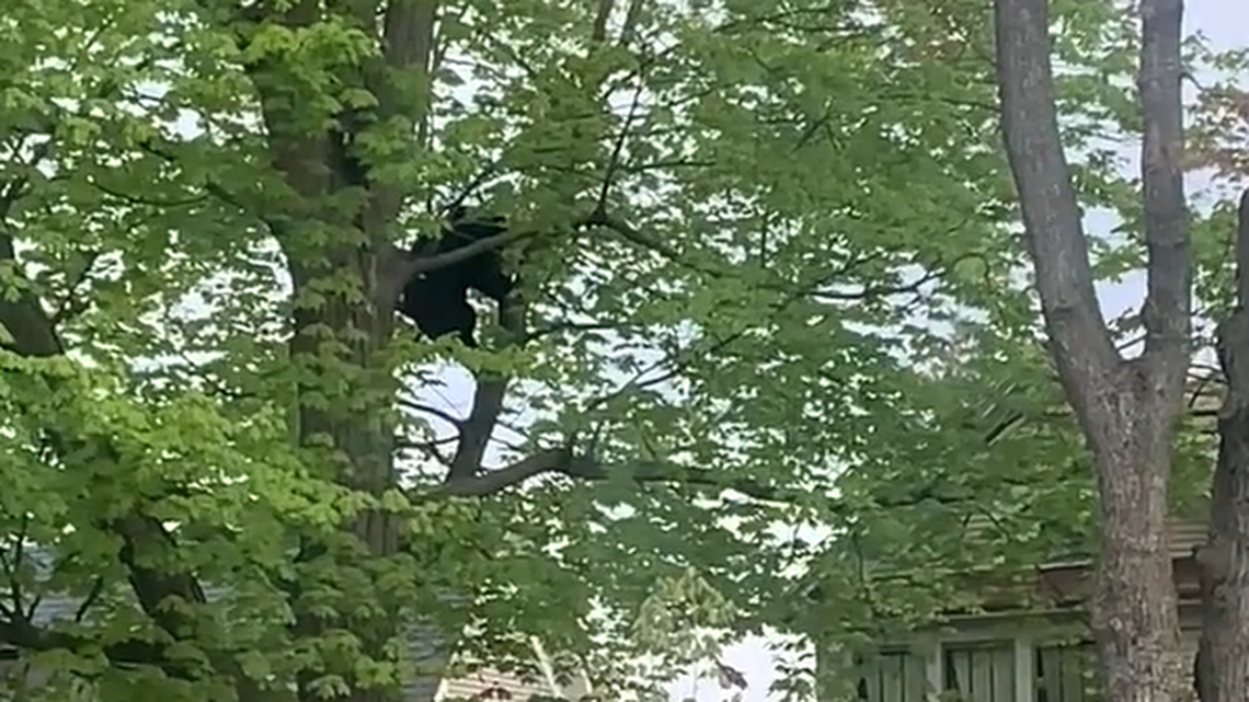 It’s possible the bear found a food source in the area but got scared by something and scrambled into the tree for safety, he said.
