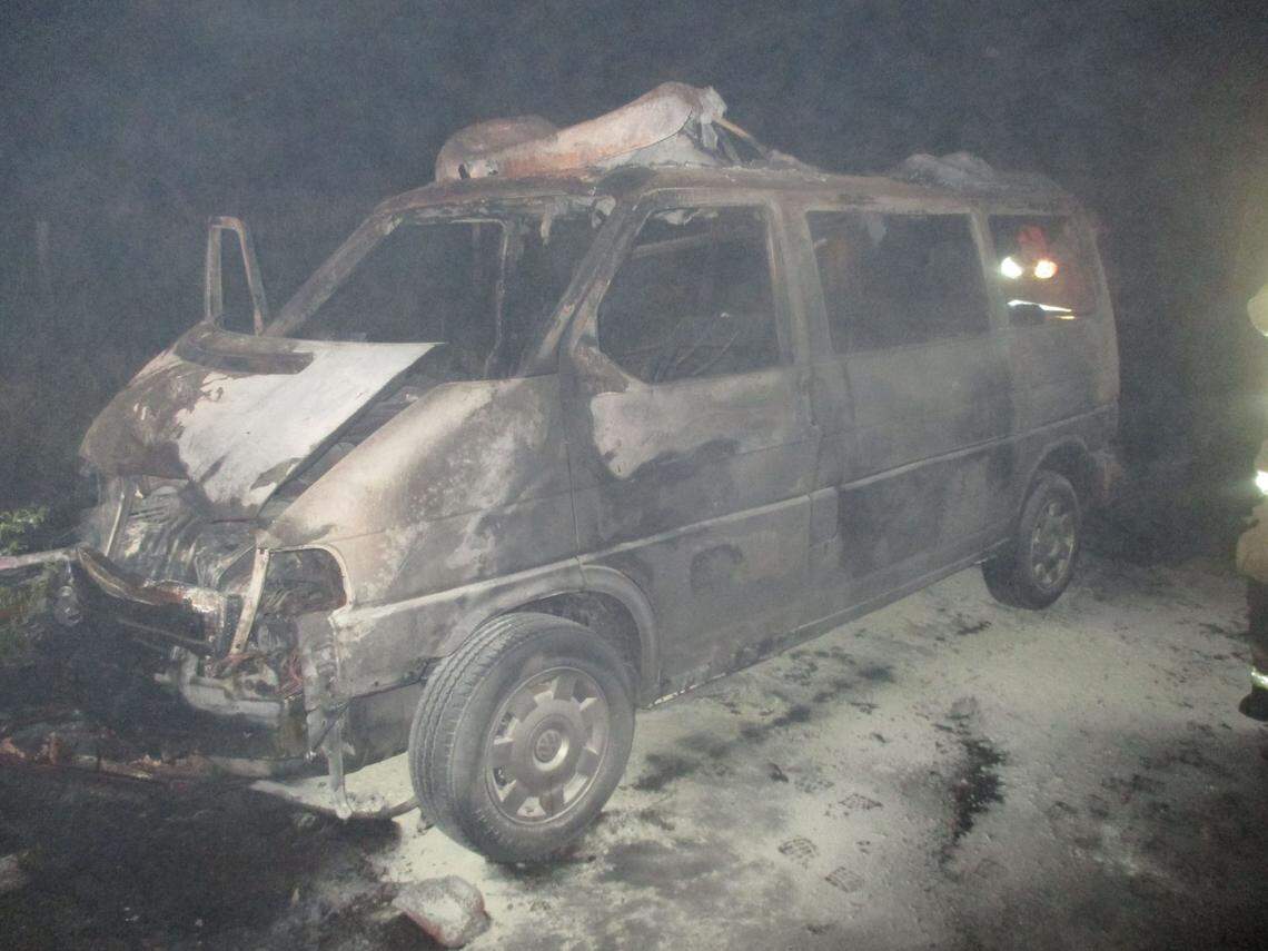 Photos of the 1999 Volkswagen Eurovan show only a skeleton of the vehicle left after it was engulfed in fire.