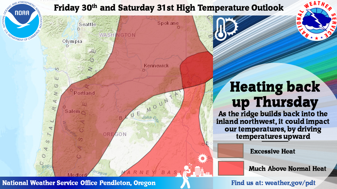 Slight cooling is expected for Sunday with a weather service prediction of a high of 98 in the Tri-Cities.